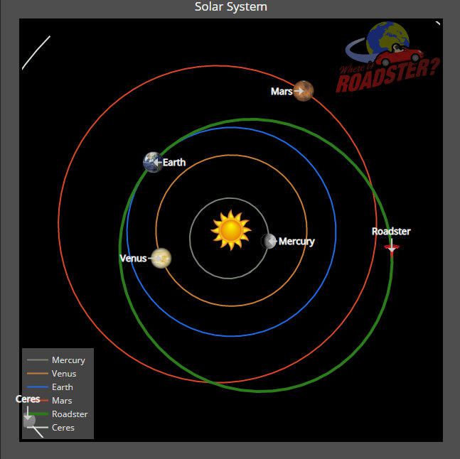 Programmer Ben Pearson volunteers to track down the journey of Tesla around the Sun. He shows his work on the website Where is Roadster? that he runs by himself. Let’s see the newest data.