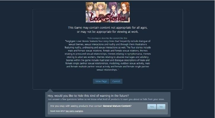 So you can pretty much feel secure when it comes to selecting games on the platform. You will never be able to come across an adult game if you wish not to. Steam has created a multi-step process including confirming your age and approval before you can see and download those games.