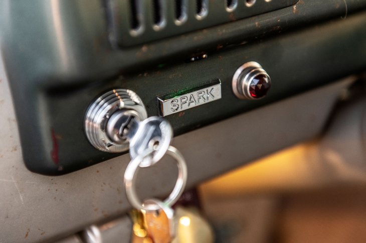 ICON wanted to maintain the vintage look for the interior too. The hides were selected from Moore & Giles as well as Relicate Leather and fabric was taken from Knoll Textiles brings about the exact appearance that Jonathan Ward pictured. Power windows operate through the original analog window cranks. Though the gauges are modern digital Andromeda, the car's design still references the original analog units.