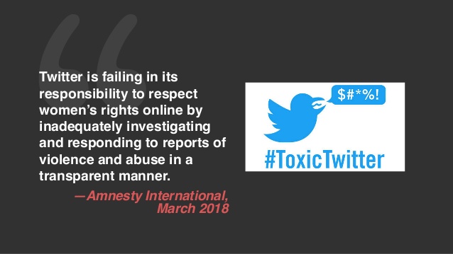 Twitter is an insecure place for female politicians and women journalists. Women regularly receive "abusive tweets" and "problematic tweets" on Twitter.