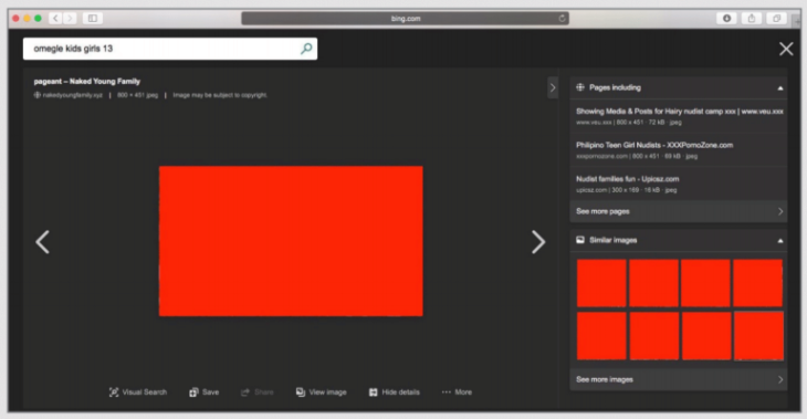 Bing's similar image feature provides more illegal images for children